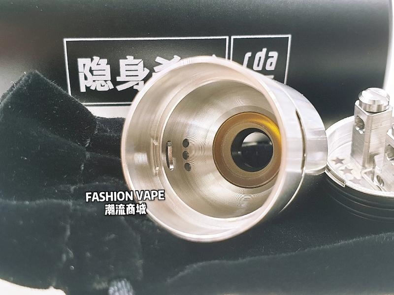 V1 RDA一樣,為了補償進氣孔這次是隱藏在罩子內,會有一些玩家,甚至一些評論師誤認為是提升進氣量對口感變化而設計的進氣孔,它實際上作用還是跟武裝V1 此設計思路很容易解決,在打開補償進氣孔時,在進氣量不變的情況下,會有把一部分吸入的冷氣流通過導流槽,從 補償氣流孔出來形成低溫區,跟直接通過的發熱線圈的煙霧融合,從而降低煙霧的溫度,所以它的優點就是在保證進氣量和口感不變的替代下,達到降低發熱線圈帶來的 高溫煙霧的溫度。