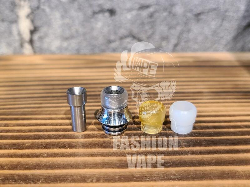 Drip Tip 510吸嘴 二種進氣道 MTL DL 滴嘴 一底座三頂帽可替換式( 透明白、白色、PEI黃)